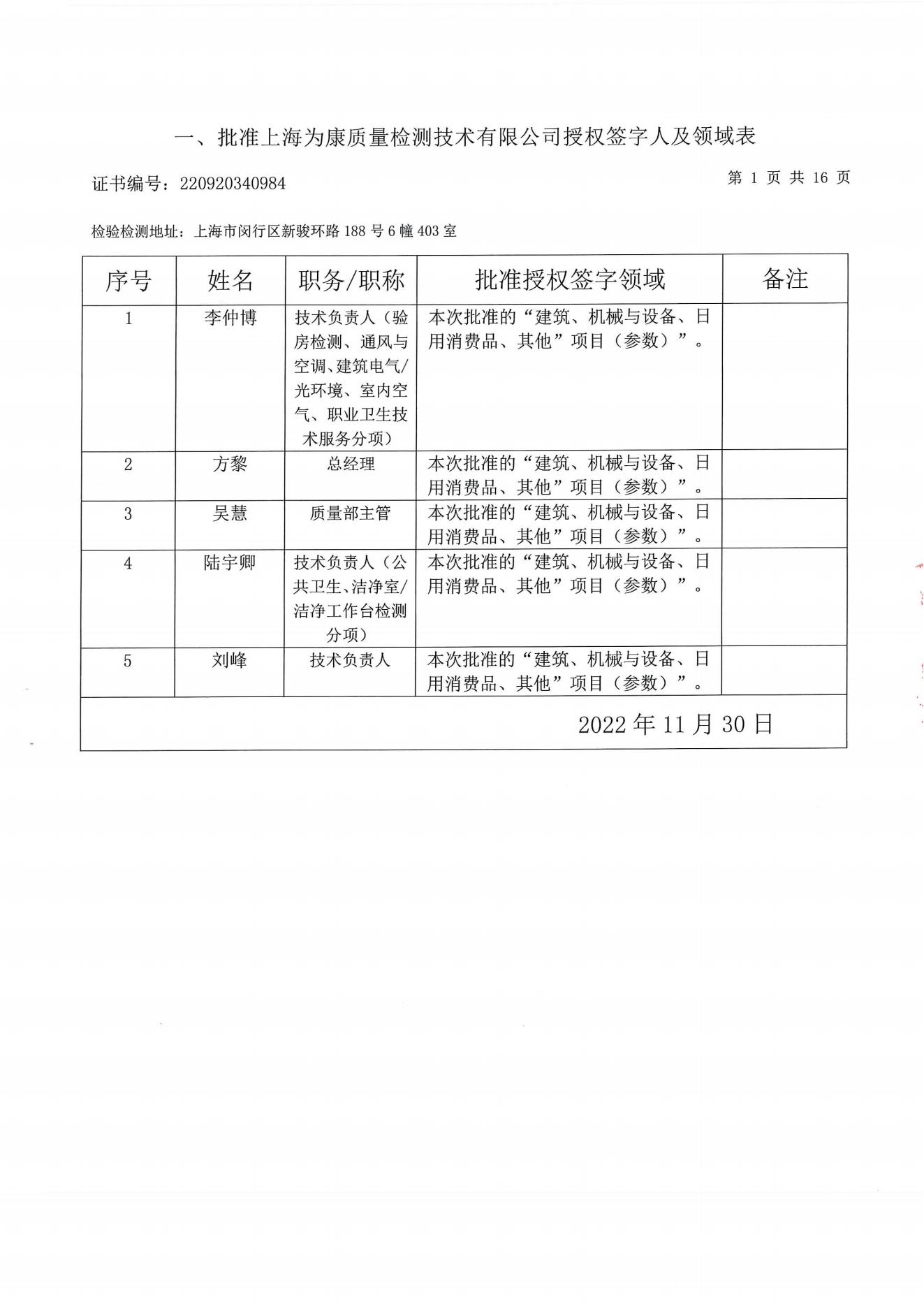 上海为康质量检测技术有限公司是上海市较早开展室内空气检测服务机构之一。